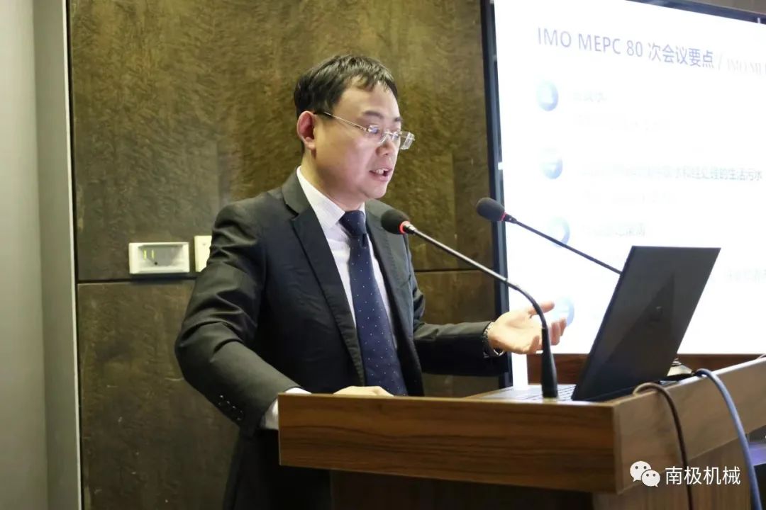 中國船級社江蘇分社產(chǎn)品處指導(dǎo)驗船師史紅軍在發(fā)言中表示,南極機(jī)械的壓載水管理系統(tǒng)的工藝路線獨特,采用“機(jī)械過濾+膜分離+充氮驅(qū)氧”純物理處理工藝,與紫外線和化學(xué)法處理工藝有所不同,在降低船舶壓載艙和管路腐蝕、減少壓載艙沉積物、節(jié)能等方面有明顯優(yōu)勢,該工藝的壓載水管理系統(tǒng)目前已獲得較多船東認(rèn)可和好評。同時,江蘇南極機(jī)械有限責(zé)任公司緊跟MARPOL公約、壓載水公約、船舶溫室氣體減排等要求不斷研制環(huán)保和新能源相關(guān)產(chǎn)品,并得到廣泛應(yīng)用,不僅促進(jìn)了自身的發(fā)展也為保護(hù)海洋環(huán)境做出了貢獻(xiàn)。